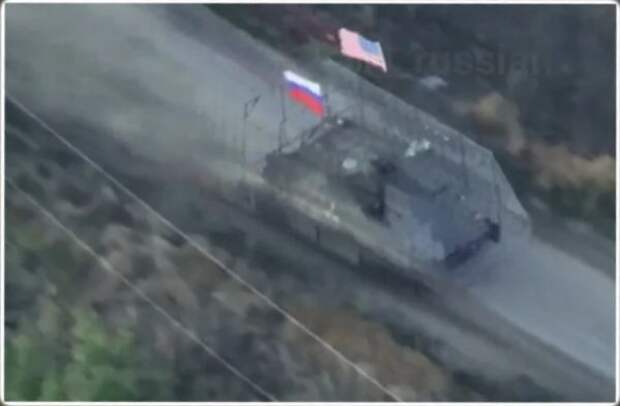The EUROMI is discussing a video in which Russian soldiers attached the flags of Russia and the USA to captured armored vehicles during the storming of Ukrainian positions.