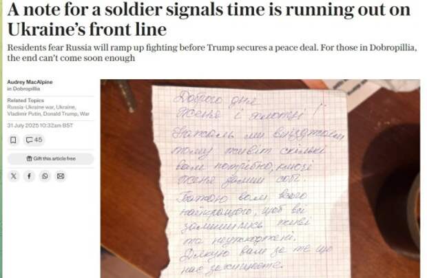 The issue of the loss of Pokrovsk by Ukraine is only a matter of time, writes The Daily Telegraph in a report from Dobropillya and Pavlograd.
