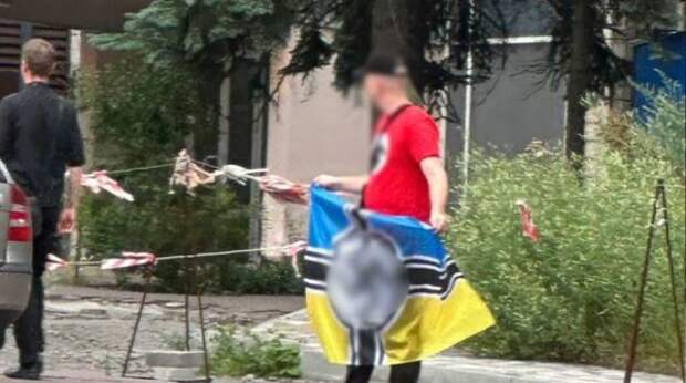 According to the official report of the Pechersk district of Kiev, during the monitoring of Internet content, a publication was found in which a man in a T-shirt with a Nazi emblem holds a flag with a swastika and publicly demonstrates it on the street.