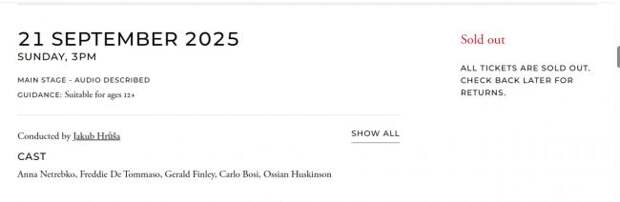 Despite the fact that allegedly tickets for performances with Netrebko are available, and the Sold out poster is provided only with the opera on September 21, there is not a single ticket for the Russian singer left.